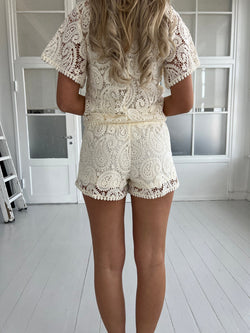 Beskrivelse: Virkelig fine blonde shorts med elastik i livet og inderstof, så de ikke er gennemsigtige. Helt normale i str. Perfekte sammen med den matchende blonde bluse