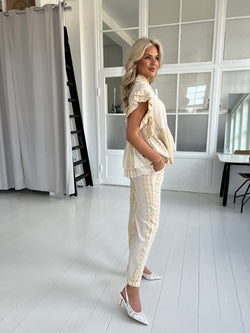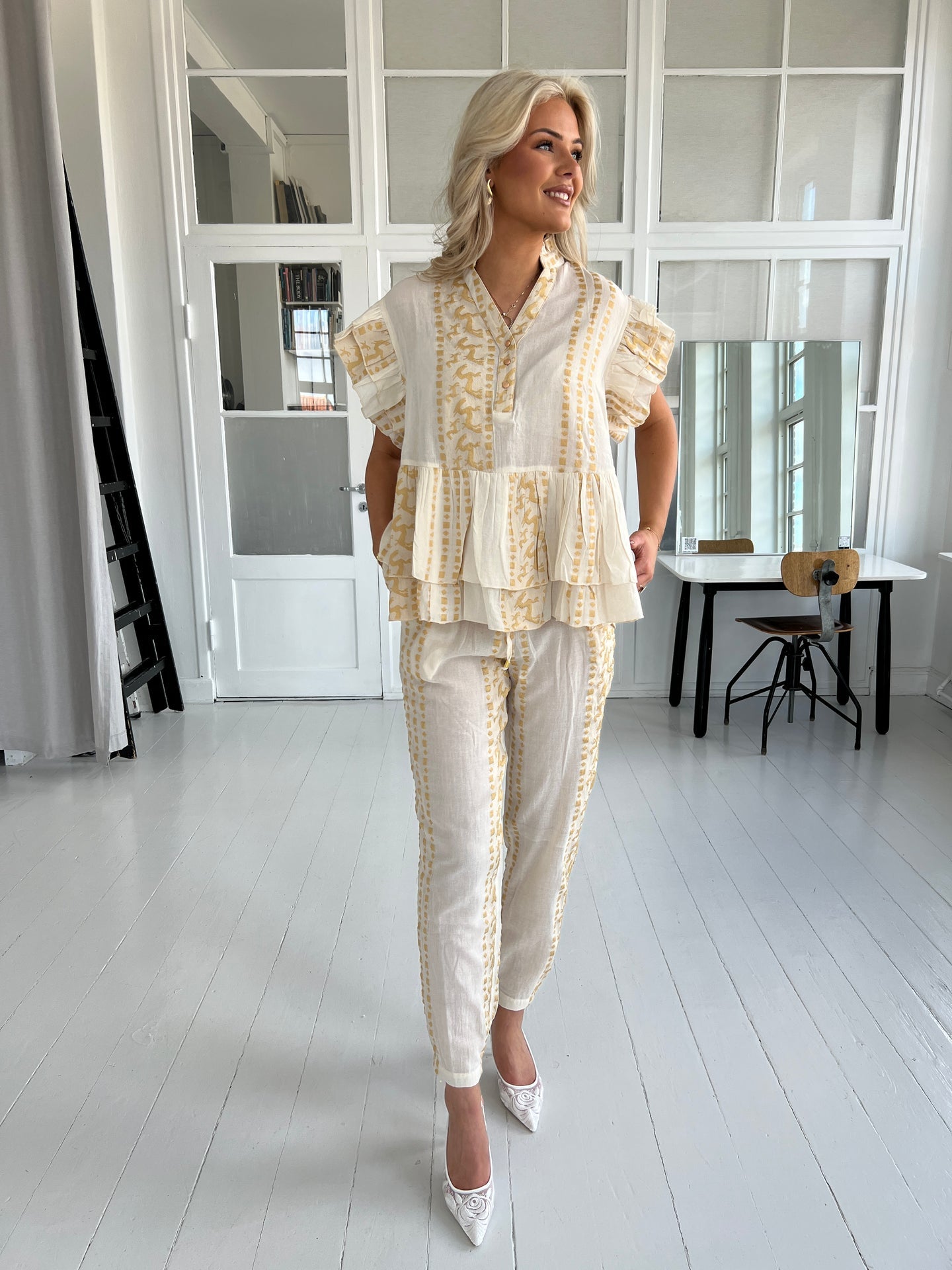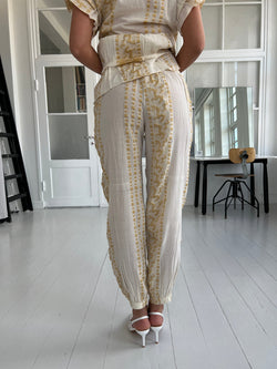 Super smukke bomulds bukser. Bukserne har elastik, snører i livet og lommer, elastik bagpå ved anklen. Bukserne kommer i størrelse S/M & L/XL. Lækker blød bomulds kvalitet som krøller meget lidt