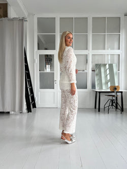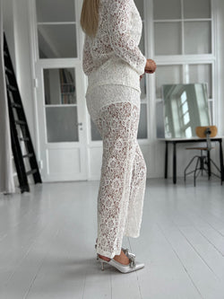 Smukke og trendy hvide blonde bukser, lettere gennemsigtig, Lukkes med knap og lynlås, lommer, lige ben